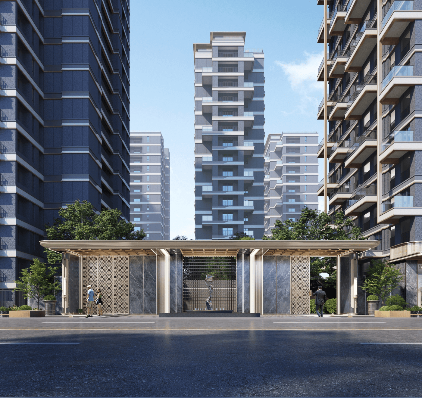 项目周边医疗配套丰硕,北侧紧邻万科里糊口广场,户户专属,绿化率为35%,融合热闹街区和酒店化空间,同时玻璃、金属线条构成空中天台。